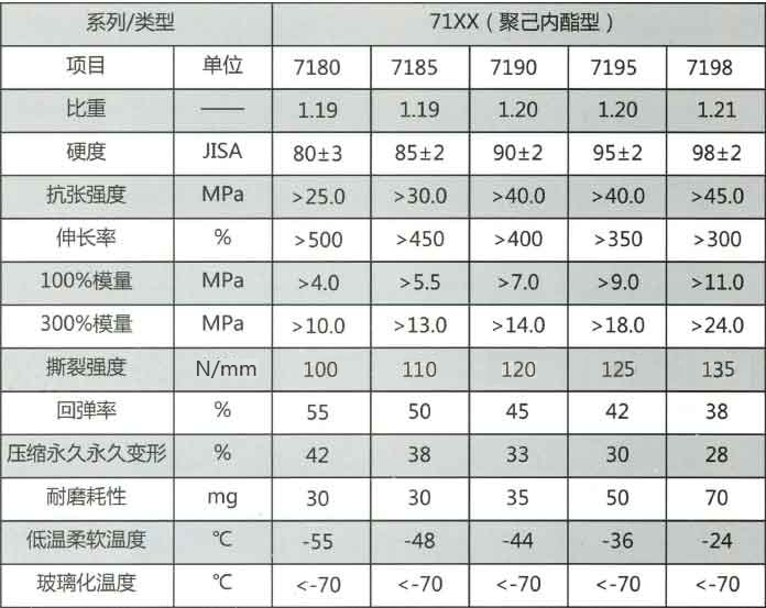 華鑫71XX系列為聚己內(nèi)酯型TPU,產(chǎn)品透明,為無色或微黃粒料,具有良好的耐磨性、成型快。同一般聚酯型TPU相比,具有較好的耐水解和低溫柔順性能,可用于擠出和注射加工。