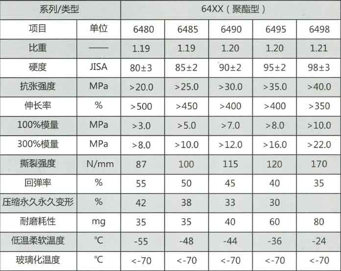 華鑫64XX系列為聚酯型TPU,產品透明,為無色或微黃粒料,具有良好的耐磨性、成型快。同其它系列聚酯型TPU相比,具有良好的透明性、彈性、成型性,可用于出和注射加工。